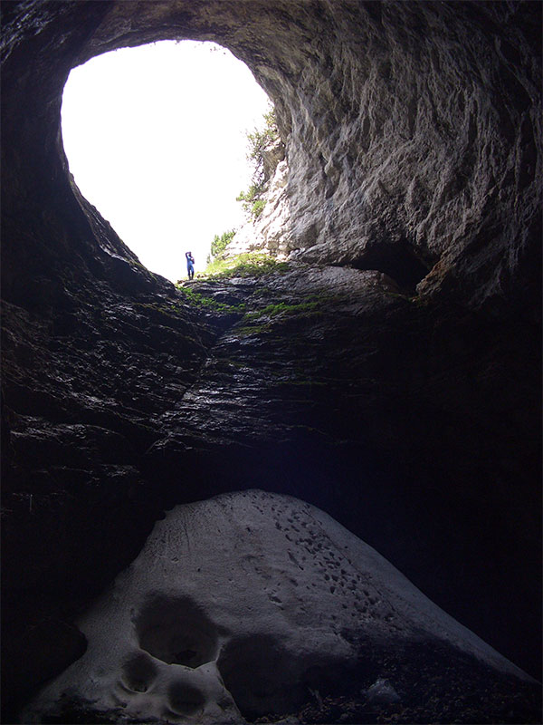 Schönen Loch (1624/21). Der Eissee am Grund der Eingangshalle ist